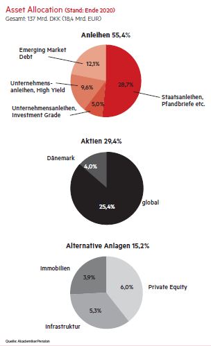 Mit satten 8,2 Prozent Rendite vor Steuern gehörte die AkademikerPension im Krisenjahr 2020 zu den besten Performern unter den dänischen Pensionskassen. Insgesamt konnte die AkademikerPension seit 2009 im Schnitt 8,9 Prozent jährlich an Rendite einfahren.