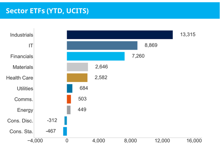 Sektorspezifisch waren Industrieunternehmen mit 13,3 Milliarden Euro am stärksten gefragt, gefolgt von Informationstechnologie mit 8,9 Milliarden und Finanzwerten mit 7,3 Milliarden Euro.