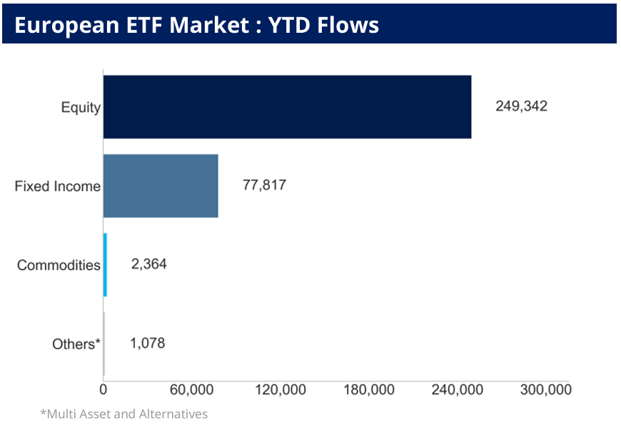 Aktien-ETFs dominierten mit drei Vierteln aller Zuflüsse und sammelten 249,3 Milliarden Euro ein, ein Plus von 15,9 Prozent gegenüber 2024. Anleihe-ETFs legten um 77,8 Milliarden Euro zu, konnten jedoch in Relation noch stärker zulegen.