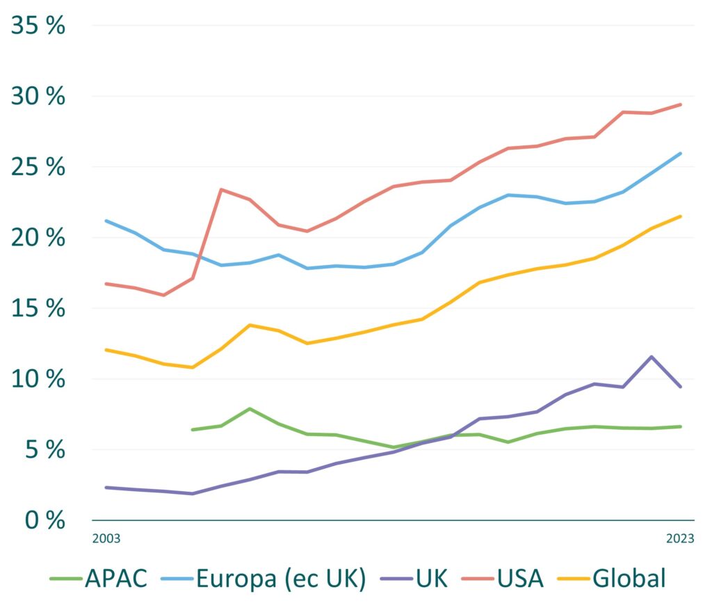 Abbildung 1: Anteil des Wohnungssektors an weltweiten Immobilienportfolios
